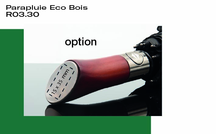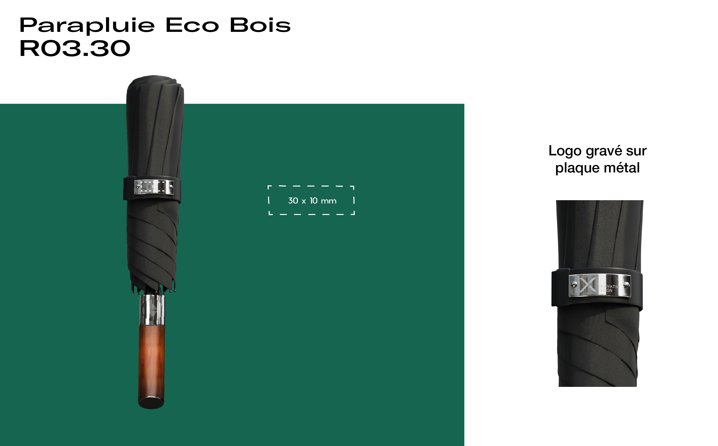 Compact umbrella with automatic open/close system, made from water-repellent 210T rPET fabric. Its sturdy design combines a metal shaft with fiberglass ribs for enhanced durability.